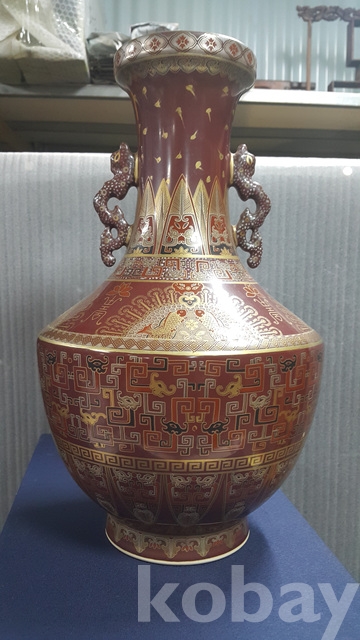 b-159.고급 상자에담긴 오래된 건륭년제고동체 장식도자기