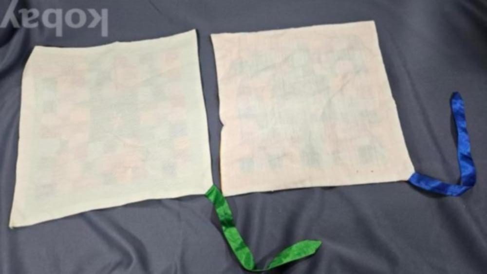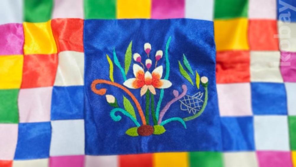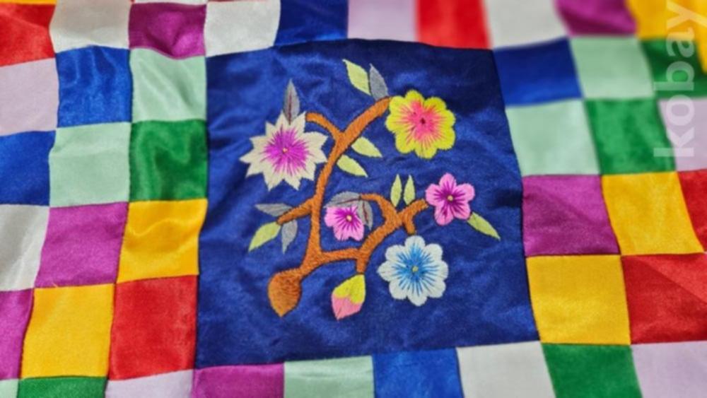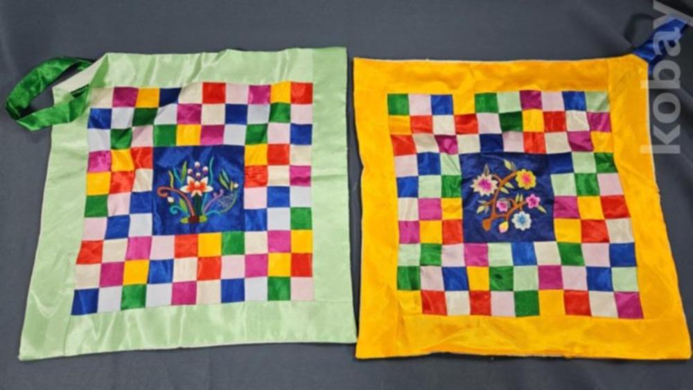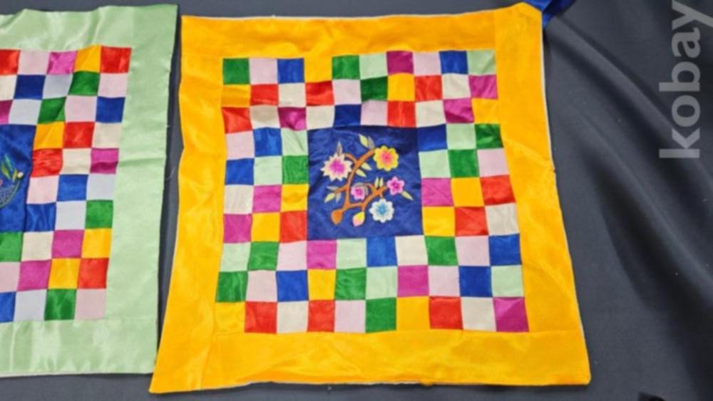 중앙에 자수가 수놓아진 자수보 2점 일괄입니다.
