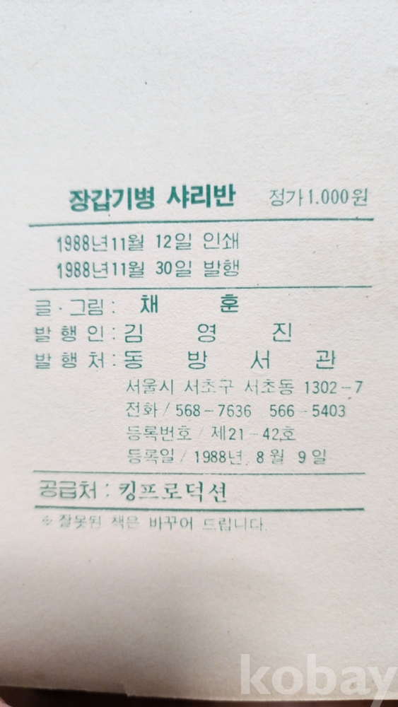 장갑기병 샤리반, 킹 프로덕숀 코믹스, 채훈 그림, 1988년