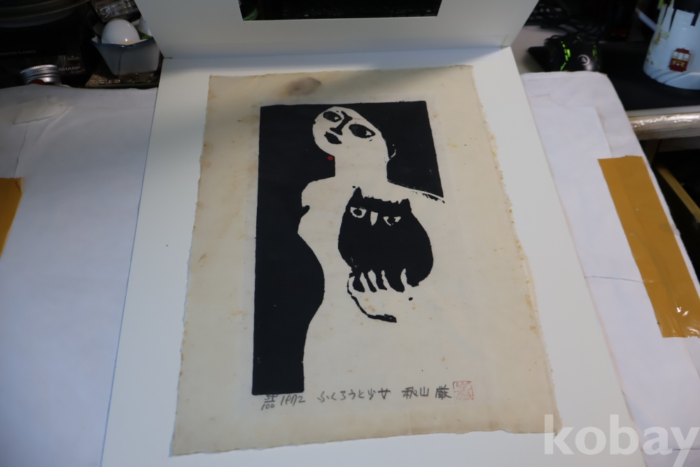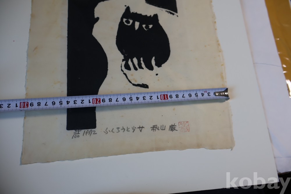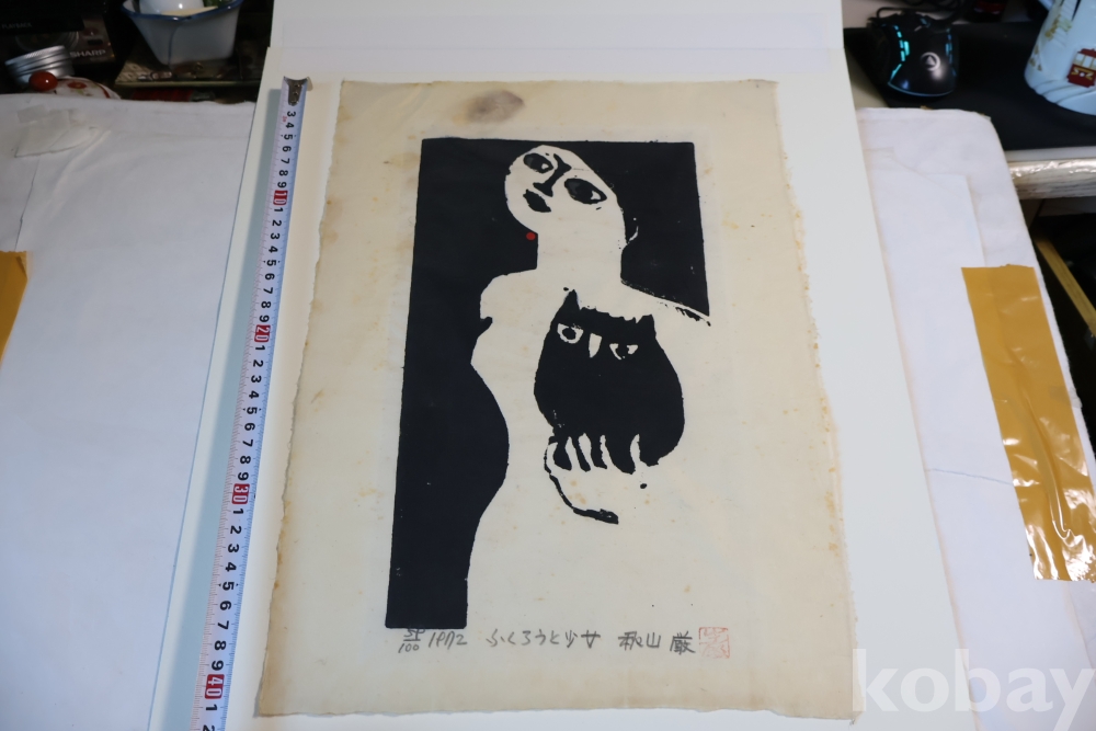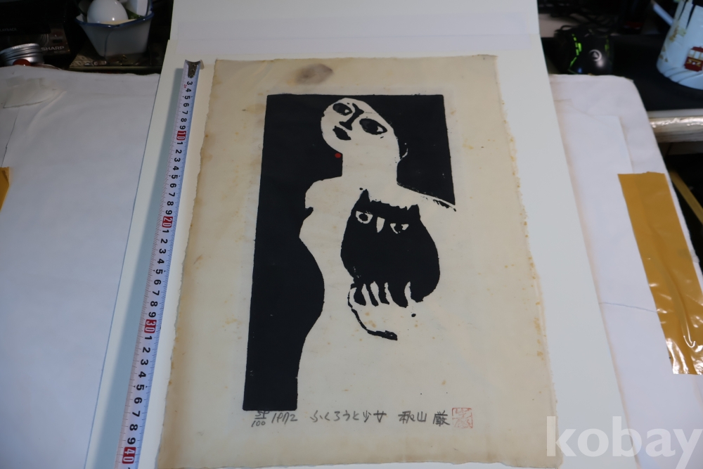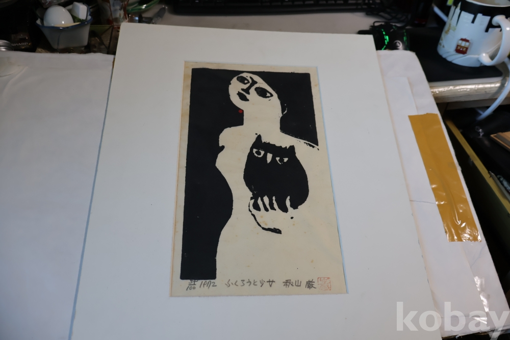 일본 현대 목판화의 대가 아키야마의 명화 임니다 에시드 프리 종이 매트를 가진 명화 임니다 사진 참조 하세요