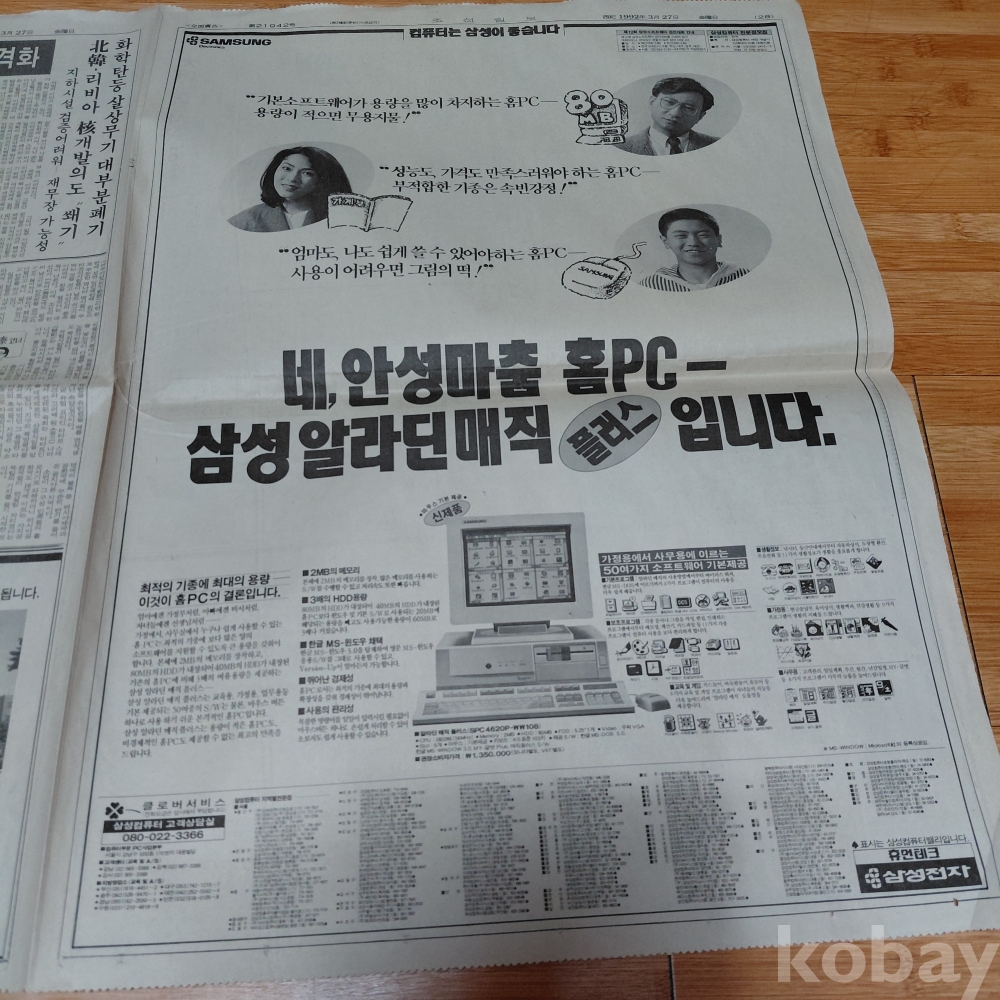 삼성 알라딘 매직 플러스 컴퓨터 광고 조선 92년3월27일 올려드립니다