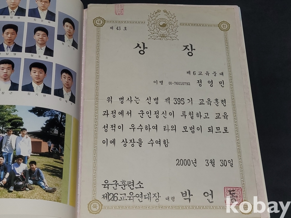 2000년 군대 육군훈련소 상장도 한 장 들어있네요.