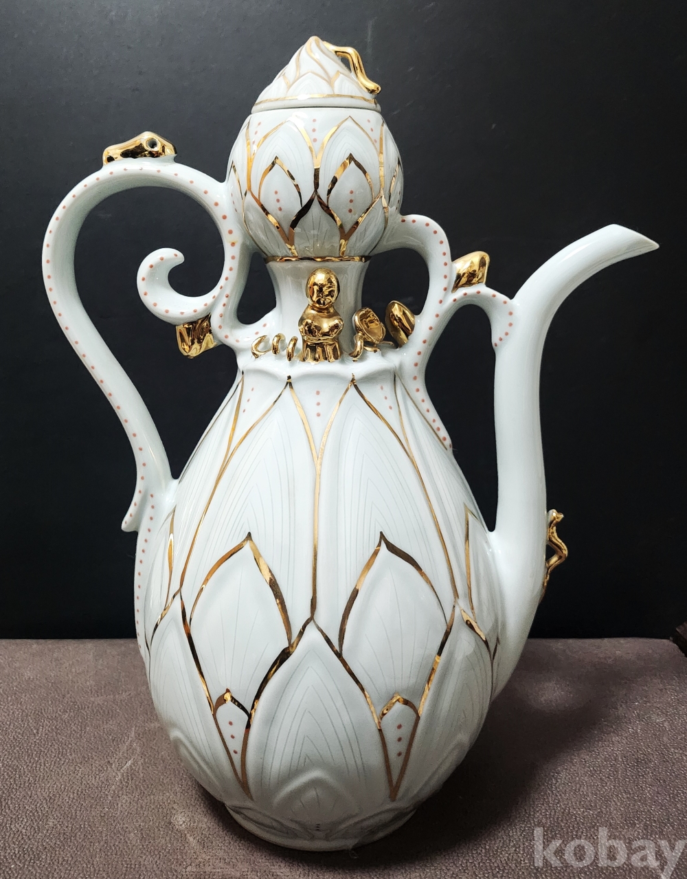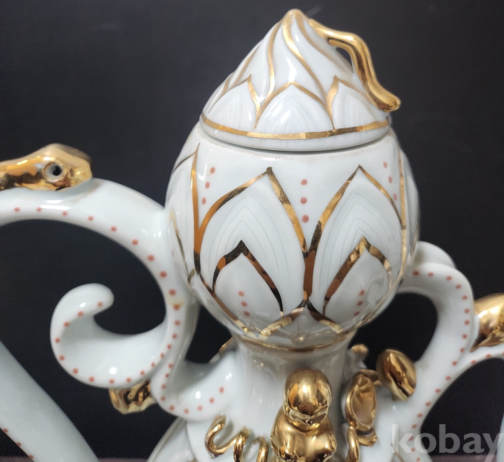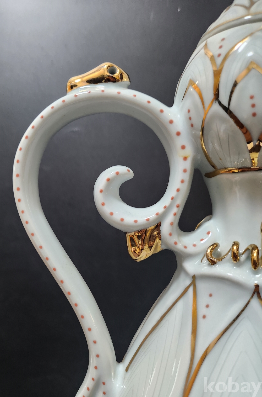 백자음각금분연화문표형주자 白磁陰刻金箔蓮花文瓢形注子