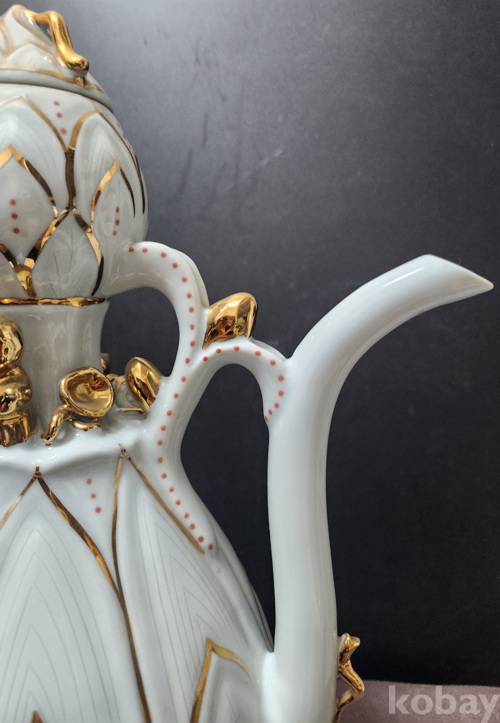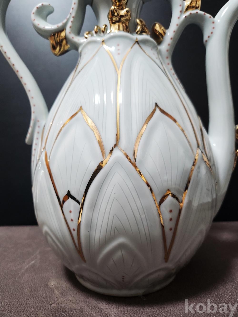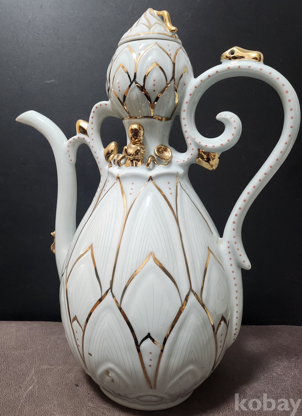 백자음각금분연화문표형주자 白磁陰刻金箔蓮花文瓢形注子