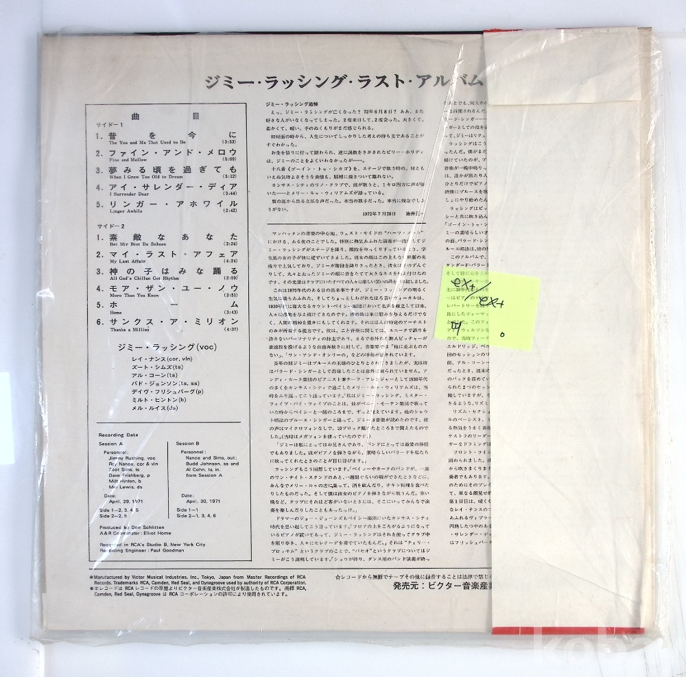 | 자켓상태 | EX : 약간의 마모, 모서리 찢김 존재 | 음반상태 | EX : 재생에 영향 없는 가벼운 기스 존재 | 발매정보 | 알수없음 | 가사지여부 | 유 |