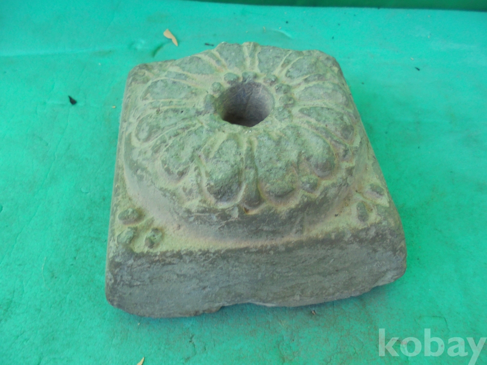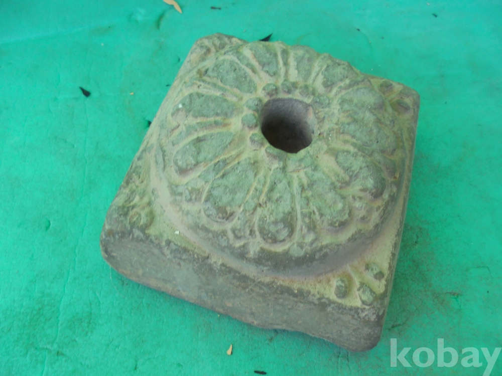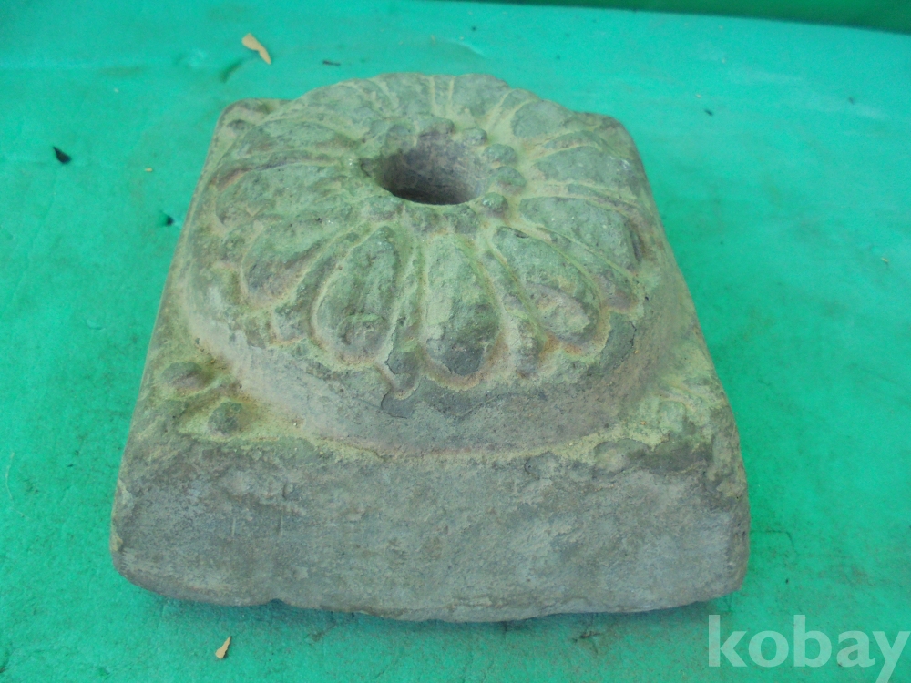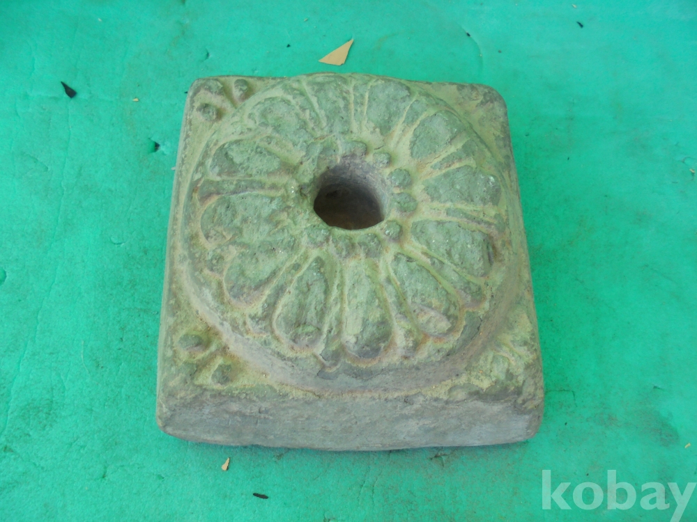 기와소재로만든 연화형태 기물인데 ㅇ중앙부분에 곳이용기물입니다