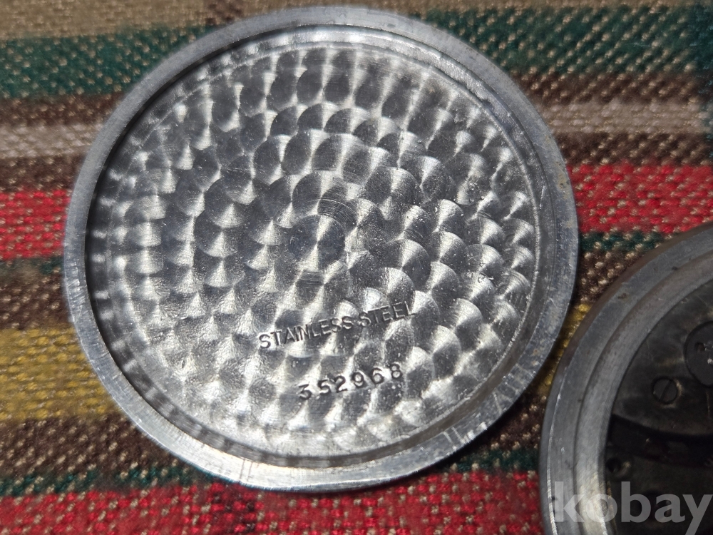현재작동되지 않는 상태로 유리와 바늘, 용두 등 결손부위 있습니다. 외관도 두루 사용감. 세월감..있습니다.