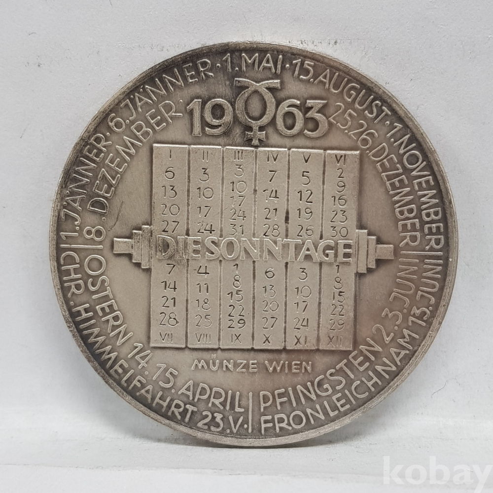 - 1963년 오스트리아 40mm 머큐리(Mercury) 캘린더 메달