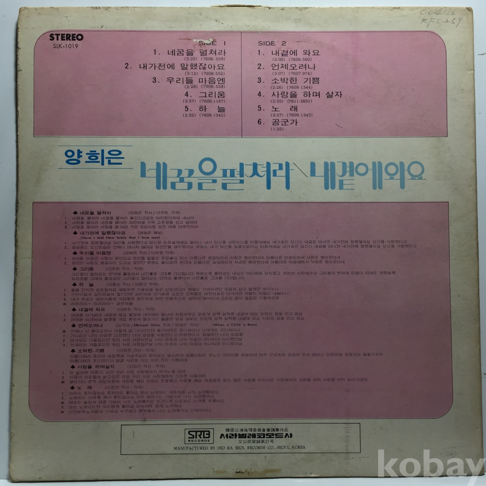 LP 350-74 양희은 -내꿈을 펼쳐라/ 내곁에 와요 자켓 EX 알판 EX 76 년 국내반