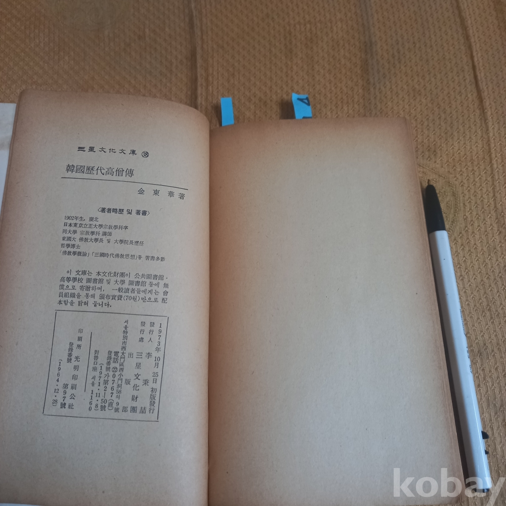 A 3394: 73년 초판 발행"한국역대 고승전"