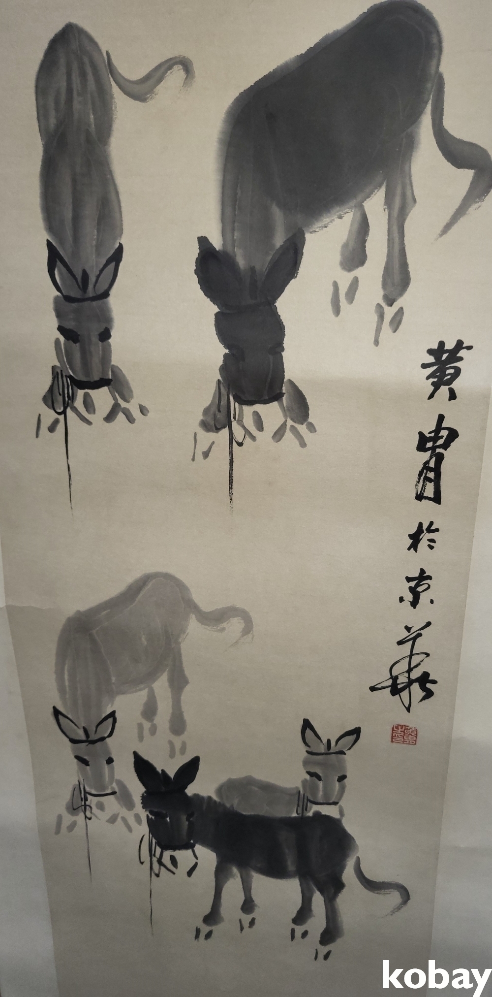 중국 유명화가 황위(黃胃) 수묵화 당나귀 그림 족자입니다,