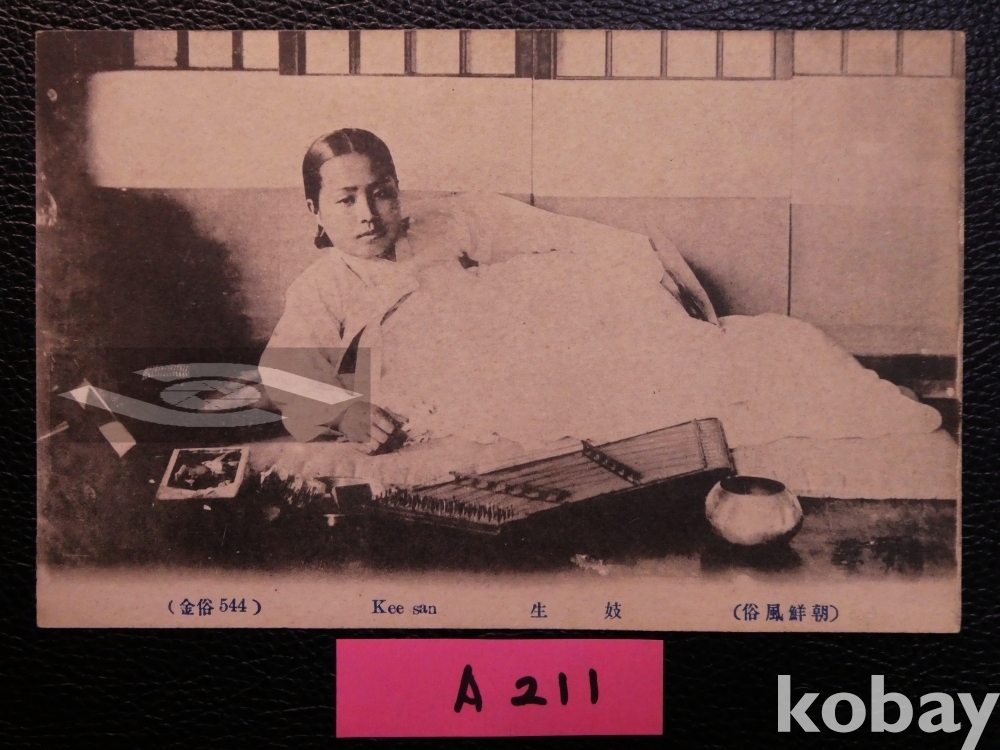 ▣근대한국 엽서(진본): 기생이 누워있는 모습/귀함/역사 자료/가야금/일제강점기 사진엽서,그림엽서,회엽서. A211