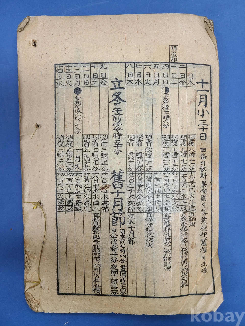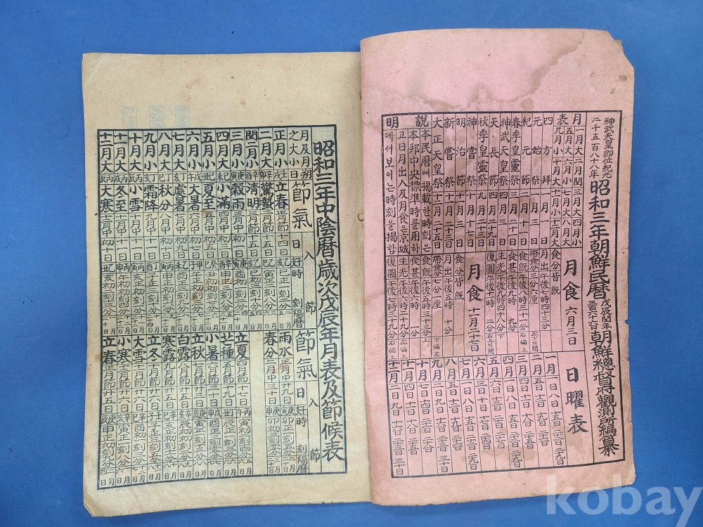 朝鮮總督府編製 소화3년 朝鮮民曆/뒷부분 11월이후 낙장