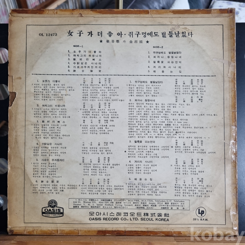 (희귀반) 최희준 [여자가 더좋아], 김상국 [쥐구명에도 볕들날있다] 오아시스레코드