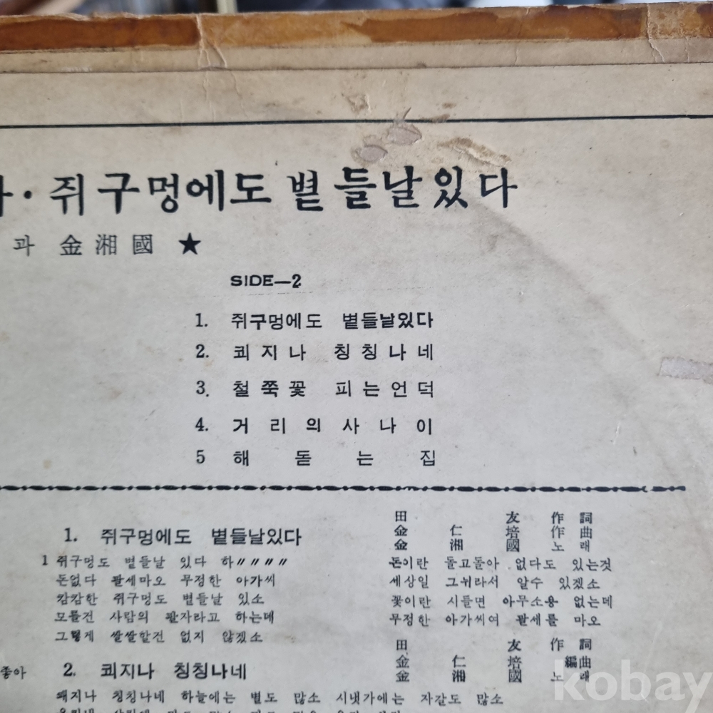 | 자켓상태 | VG : 주름, 접힘, 모서리 찢김 다수 | 음반상태 | EX : 재생에 영향 없는 가벼운 기스 존재 | 발매정보 | 초반 | 가사지여부 | 무 |