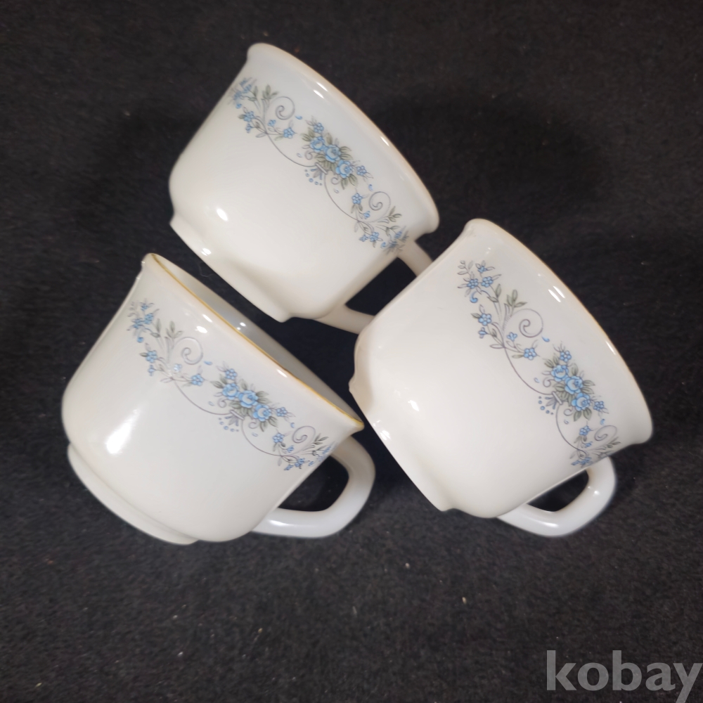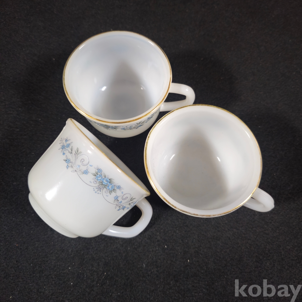 (((근현대사자료/고전커피잔))) 1980년대 꽃문양이 이쁜 고전커피잔 3개 (창희유리)