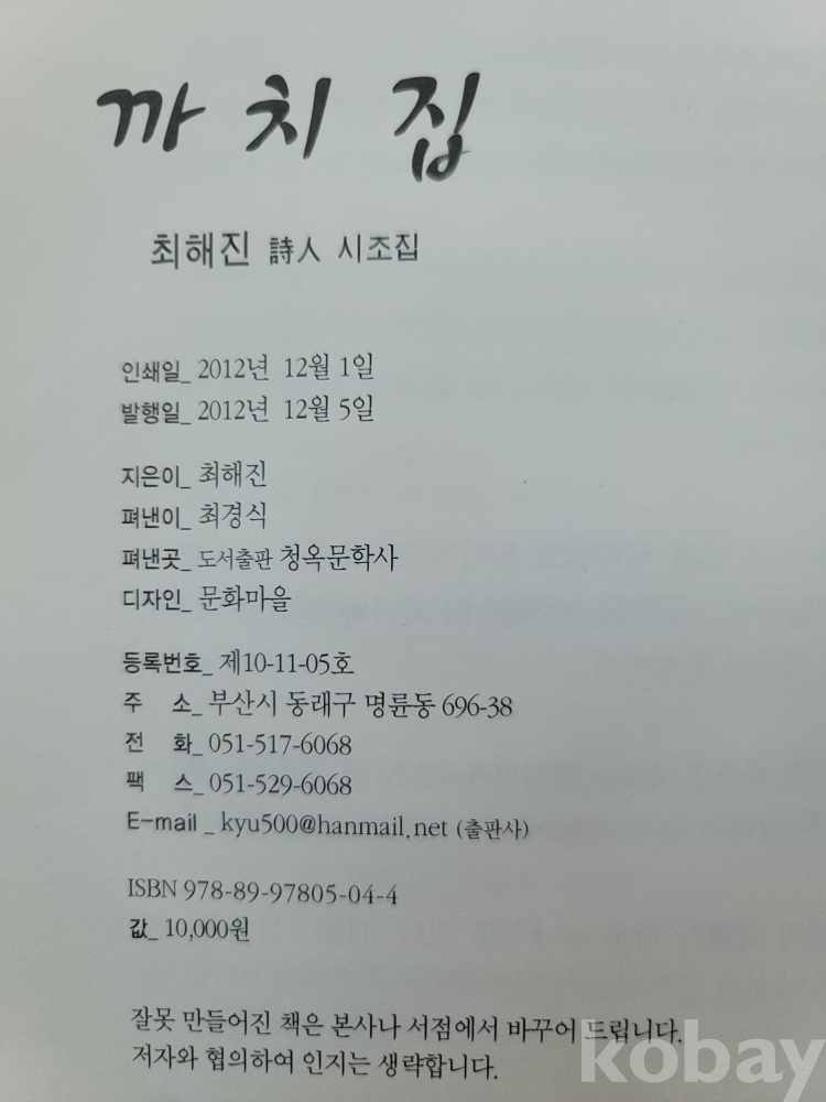 2012년 발간한 첫 시조집 『까치집』
