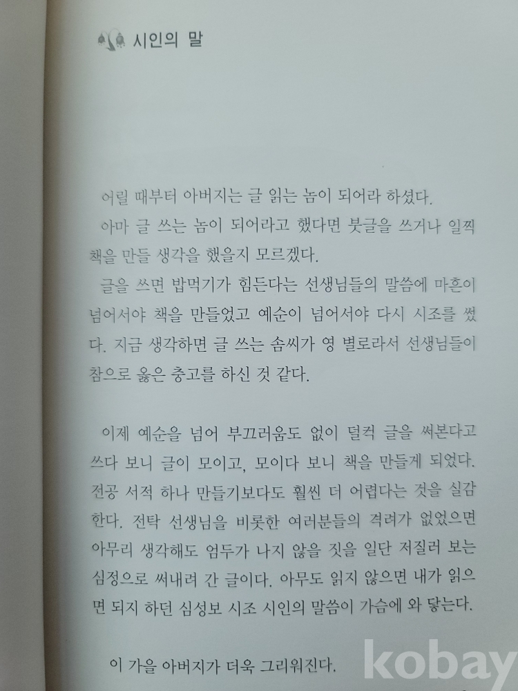 전탁(시조시인)의 발문. 5부 82편 수록.
