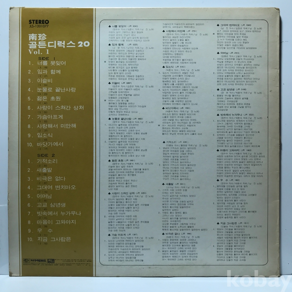 LP 21,950-110 남진 골든디럭스 20 - 너를 못잊어/ 기적소리 76 지구 자켓 EX 알판 EX+