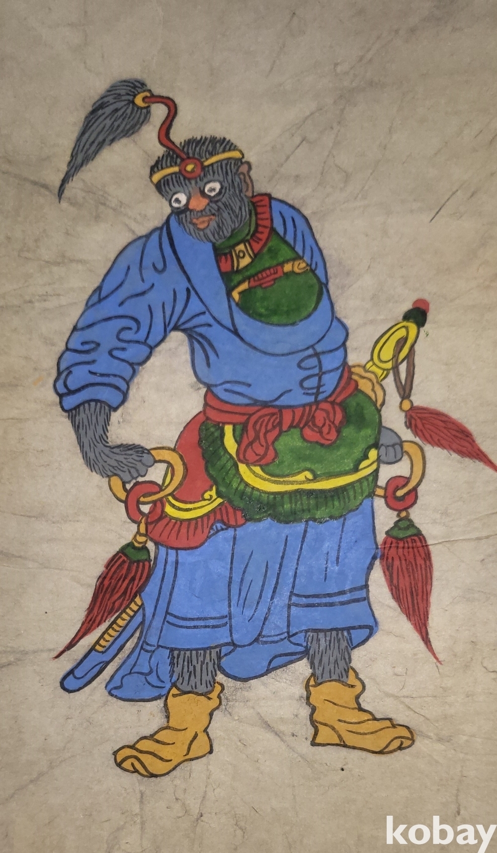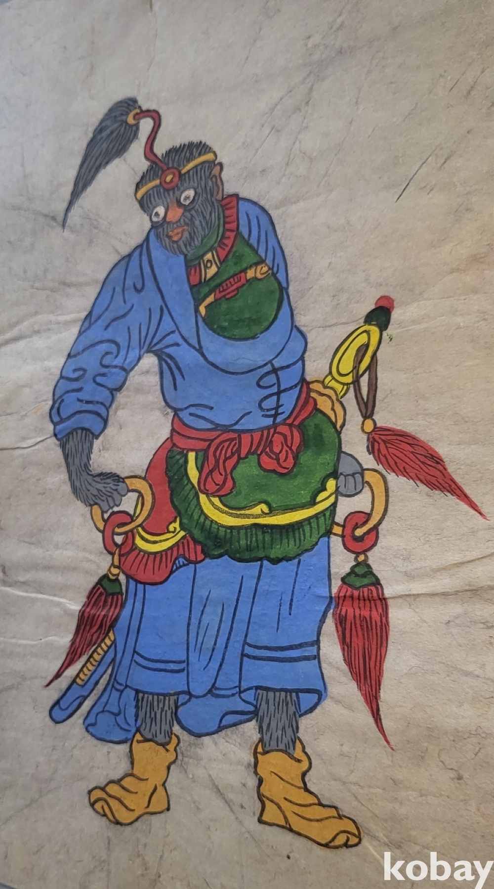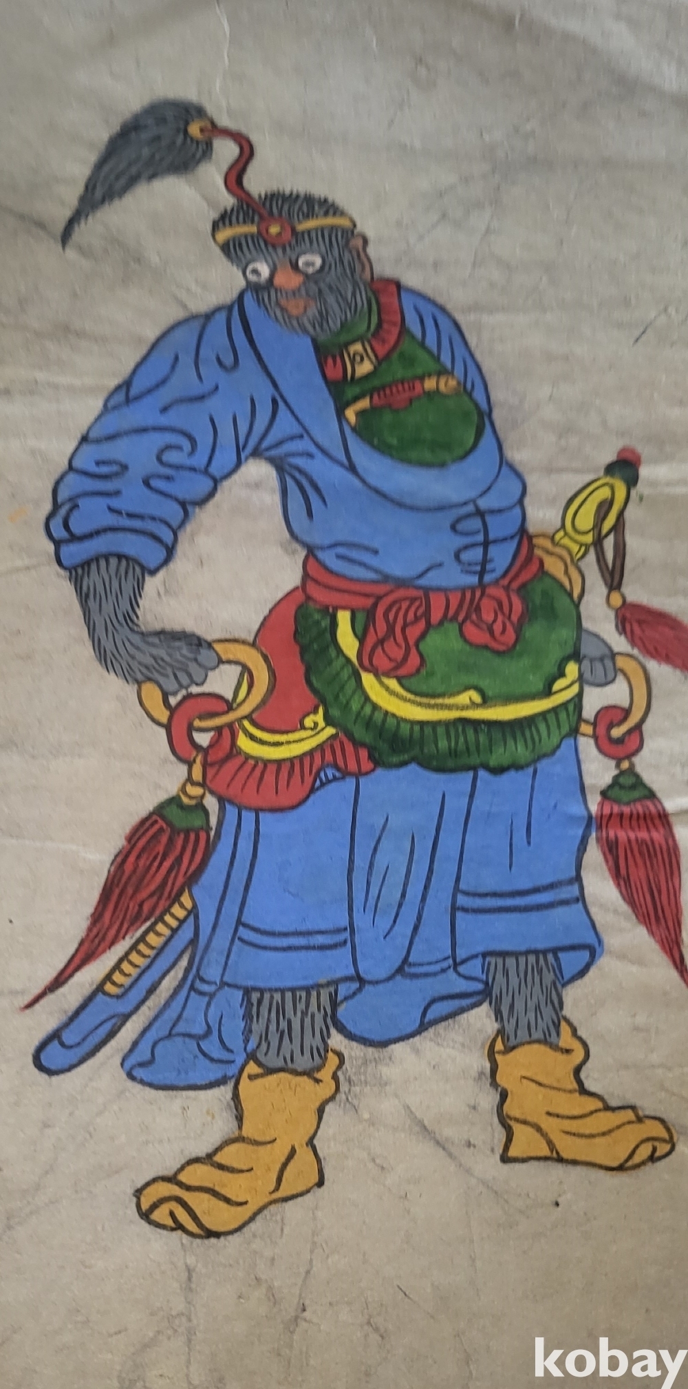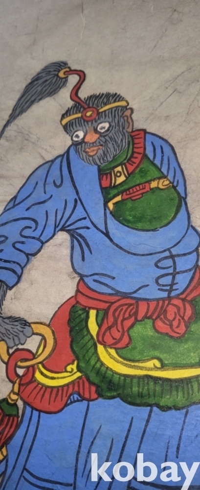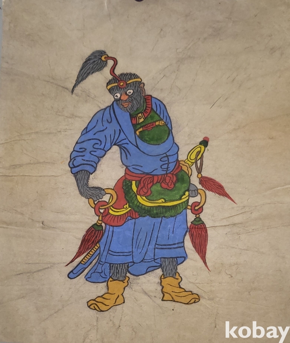 구한말 연대 갖춘 장지 바닥에 당채로 그려진 동물 형상 그림입니다,