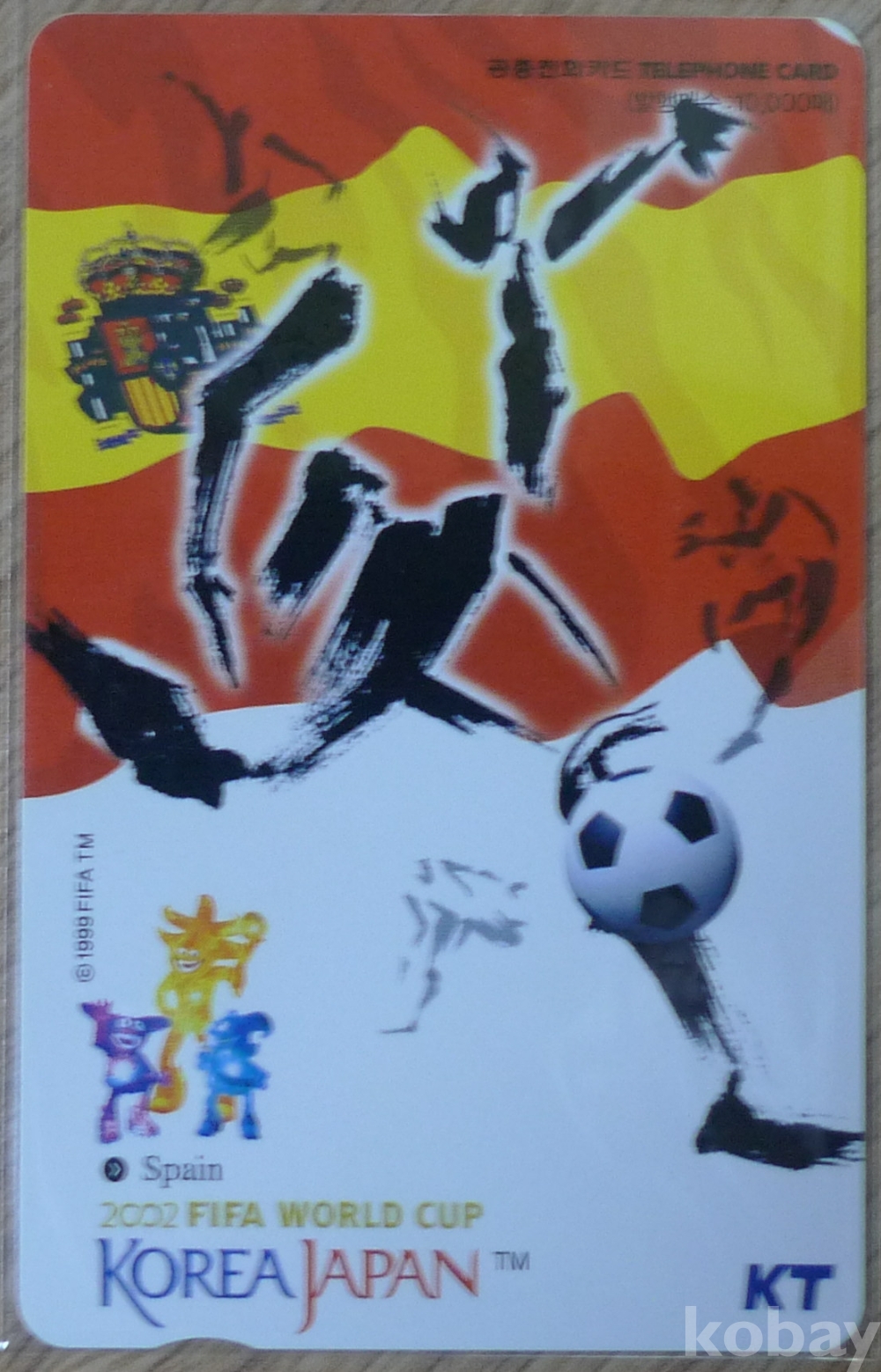 앞면 참가국 스페인 국기와 2002한일월드컵 마스코트
