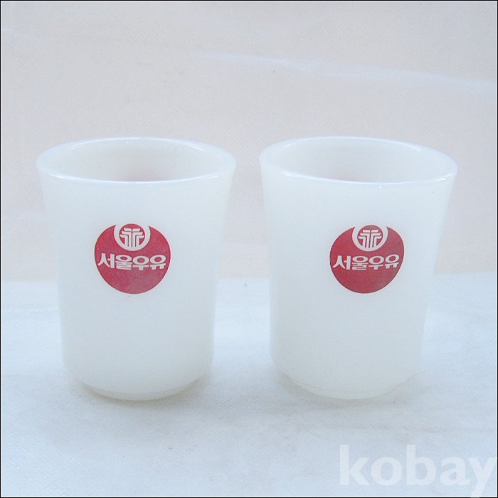 축협로고 서울우유 밀크잔 2개 세트 (미사용, 박스) (1049)