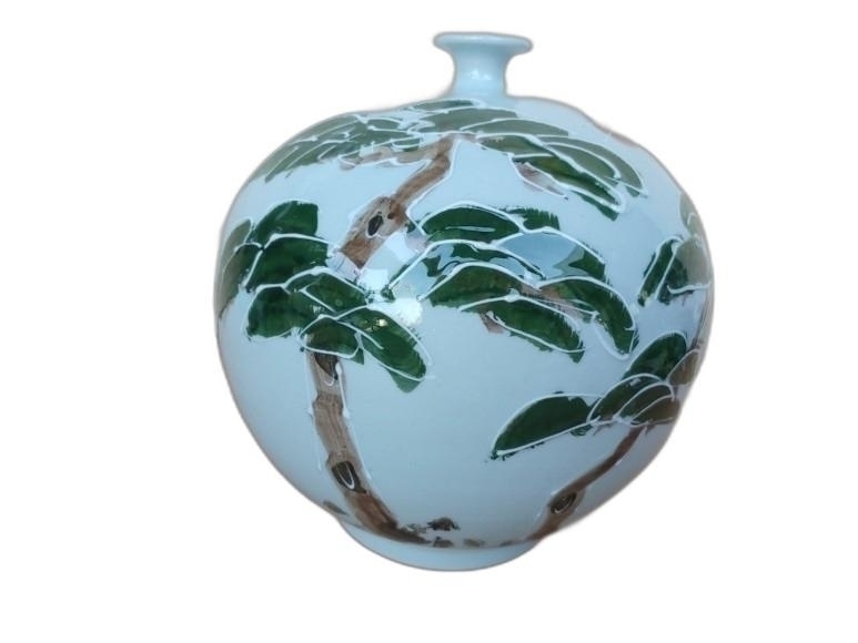 수광 소나무 도안 입이 작은 도자기 입니다.