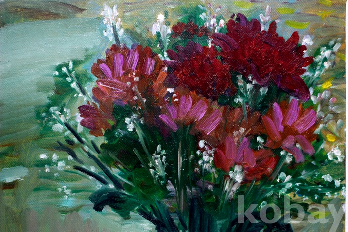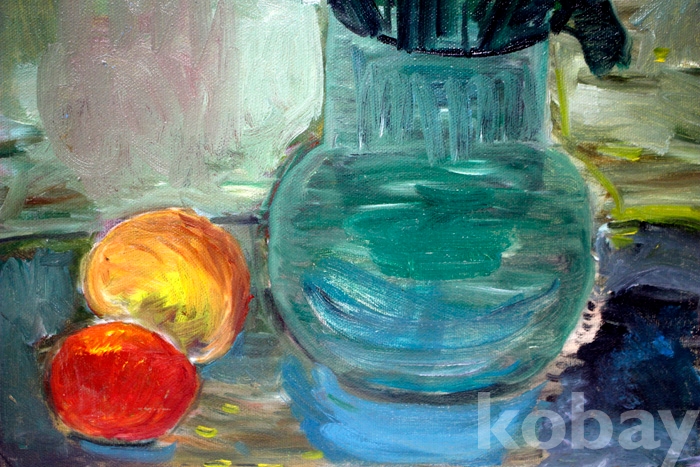 (유화) 작가미상의 정물 - 화병속의 꽃과 과일 (6F)