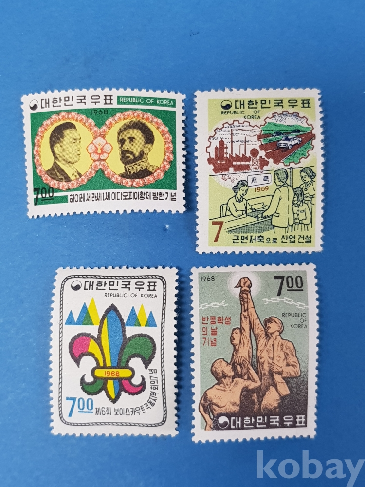 **** 하이레세라세1세 이디오피아황제 방한 기념(1968), 근면저축으로 산업 건설(1969)등/4매