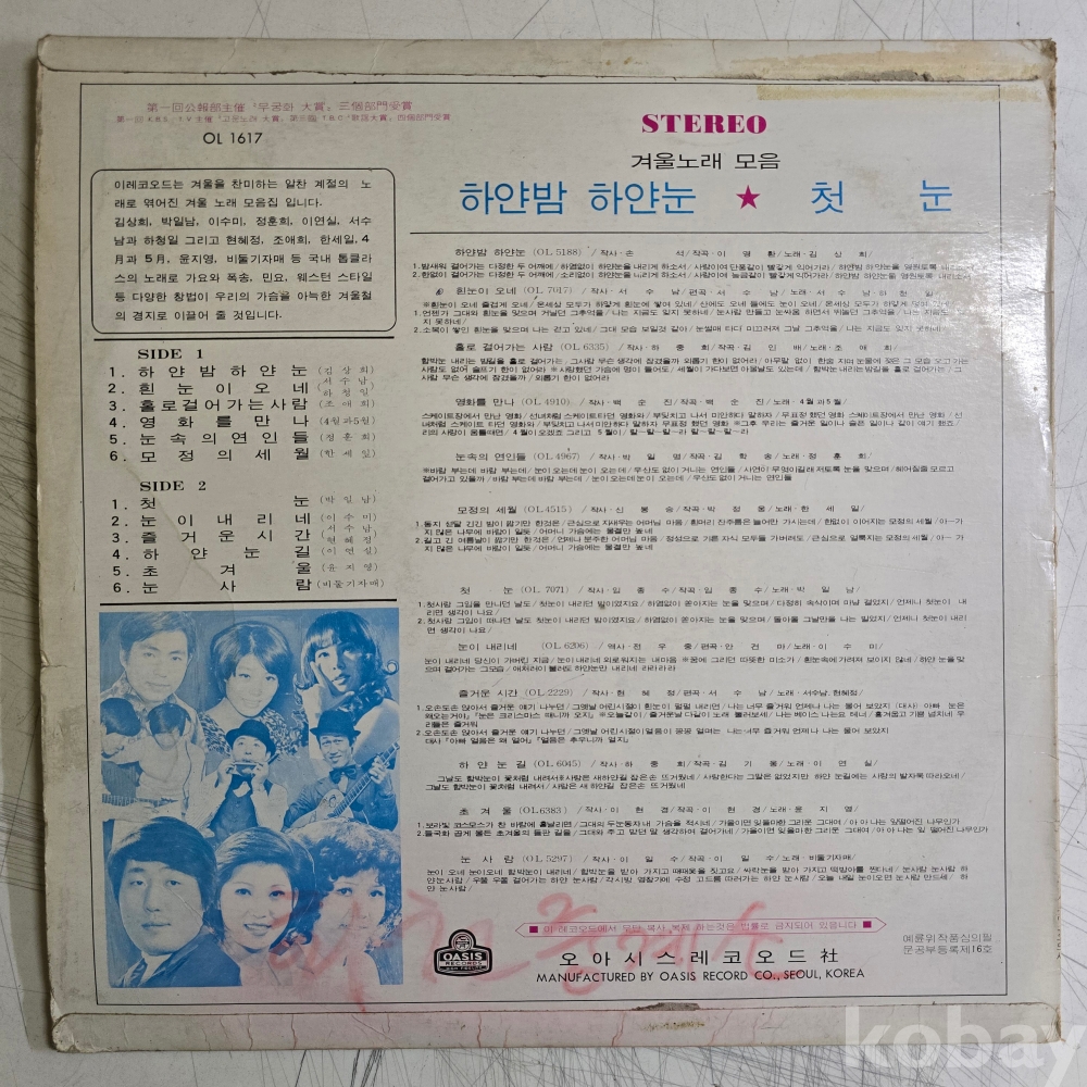 | 자켓상태 | VG : 주름, 접힘, 모서리 찢김 다수 | 음반상태 | VG : 생활 기스 다수, 가벼운 노이즈 존재 | 발매정보 | 초반 | 가사지여부 | 무 |