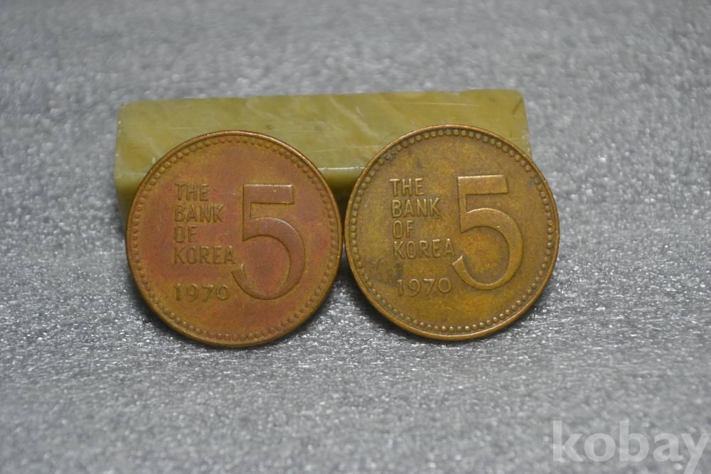 " 귀한종류~ 특년도(적동화, 황동화)~ 초기발행년도 1970년도~ (적. 황 2점 일괄) ~ 한국은행 1970년도 거북선 5원 동화 ~ 현행주화 5주 / 깨끗하고 좋은 보존상태~