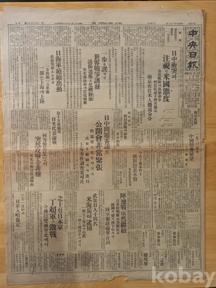 中央日報 1932년(昭和 7년) 2월 1일 월요일