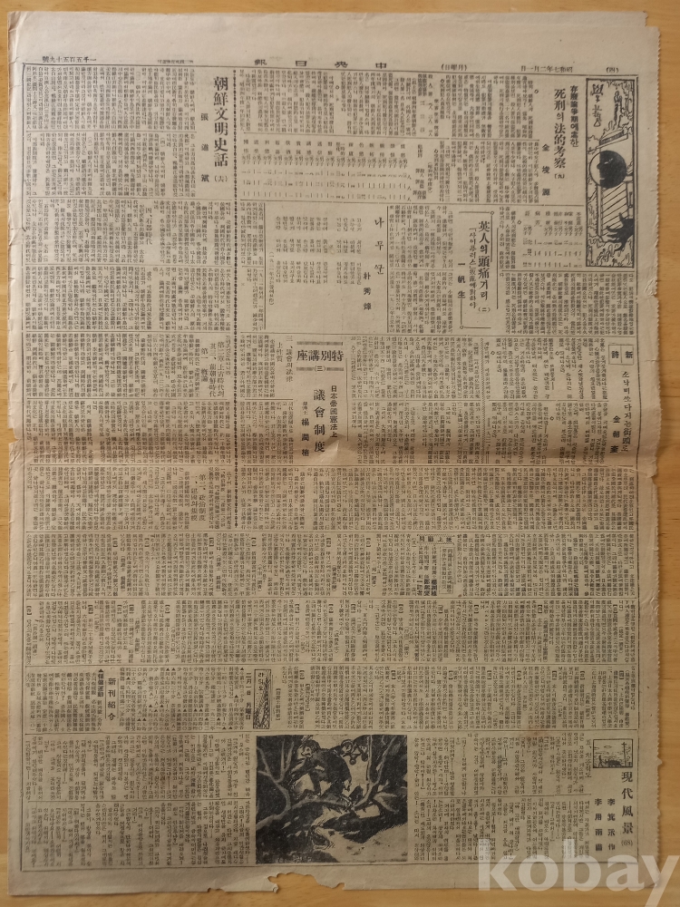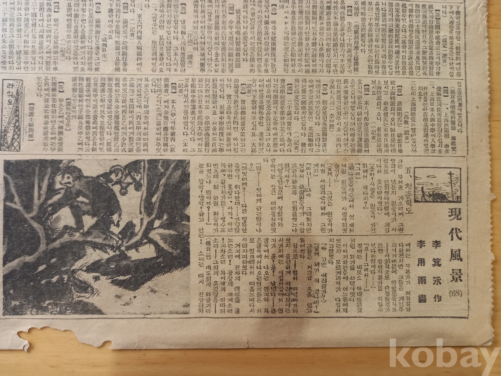 4면: 하단 신문연재소설 <현대풍경(68)> 이기영 작, 이용우 화..