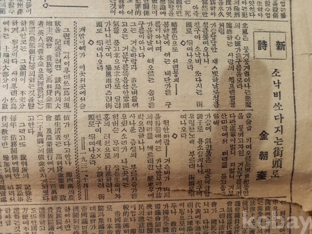 -중앙 우측에 <신시-소낙비쏘다지는 가두로>(김조규)의 시..
