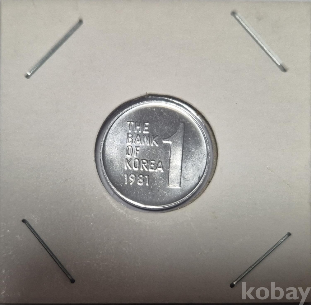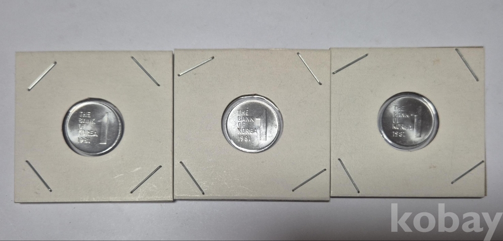 1981년에 한국은행에서 발행한 1원 동전 3개입니다.