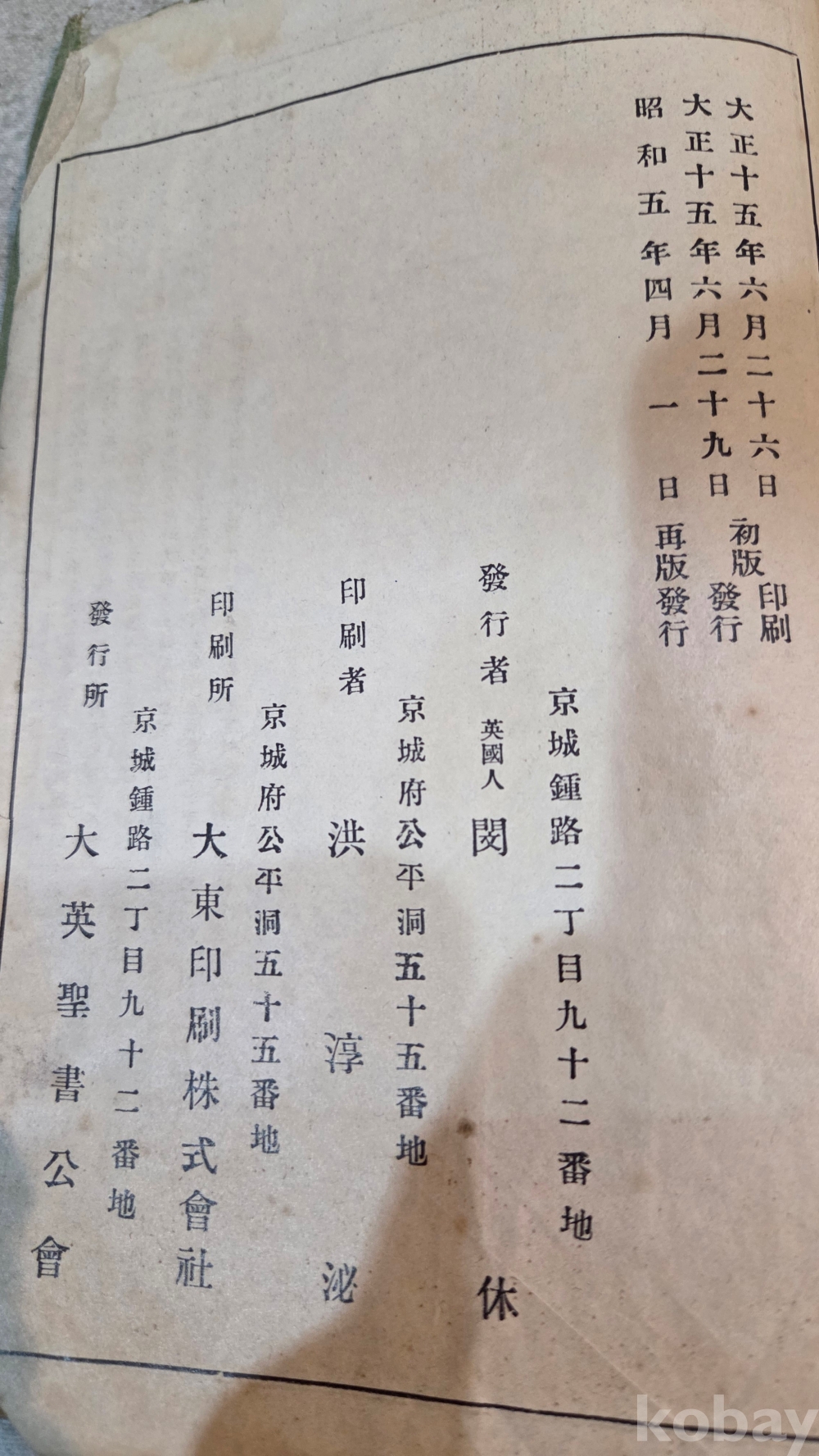 성경책 / 신약전서 / 1926년 초판 1930년 재판