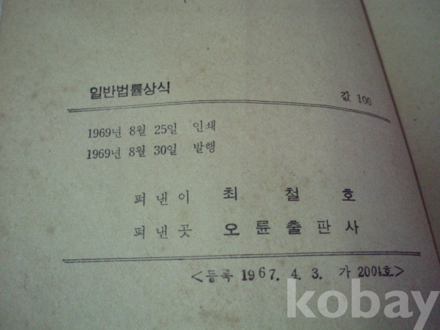일반 법률 상식 - 생활인의 지침서 (1969년, 오륜출판사)