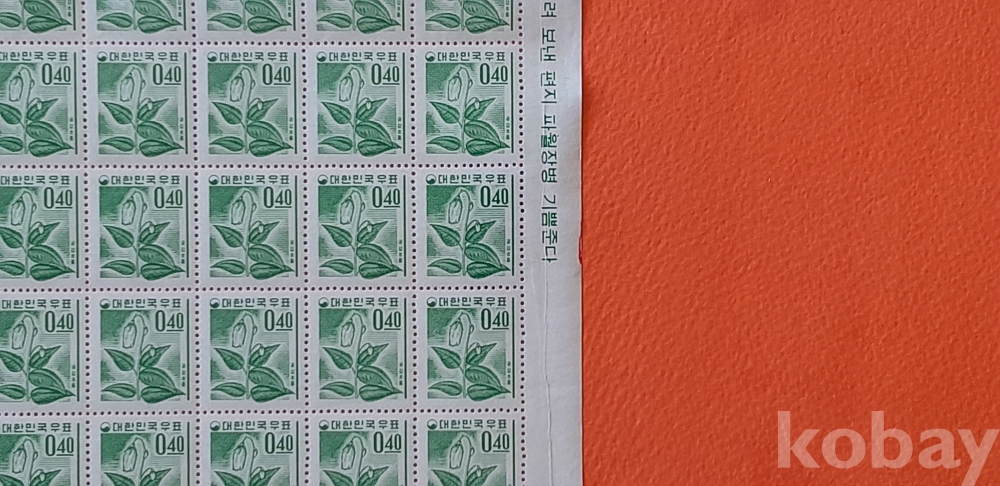 1969년 제2차 국산백지 40전 금강초롱 100매 전지 입니다.