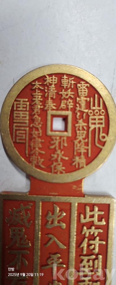 p-95.섬세한조각으로팔괘경명주사칠이된 황동부적