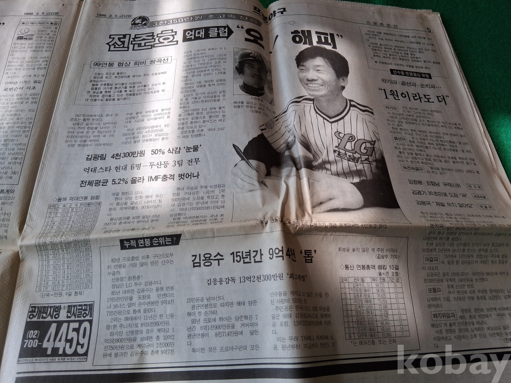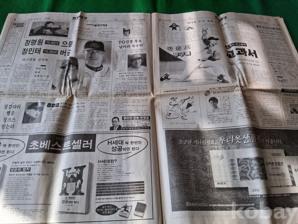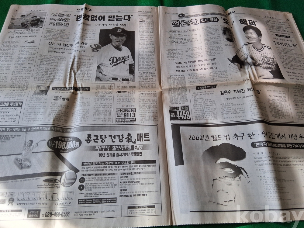 90년대말 해태타이거스 이강철선수의 전성기시절 신문-1999.2.5
