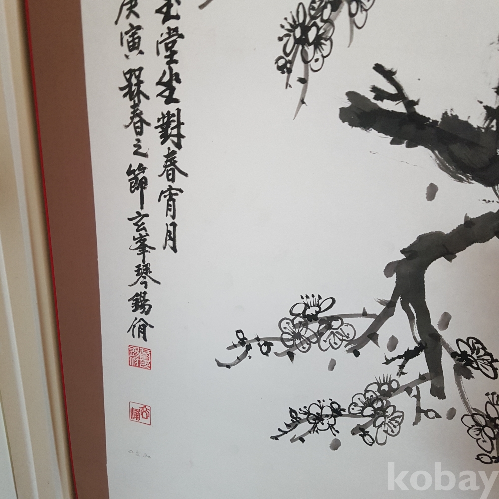 갈필로 유명하신 금석일님 미사용 매화그림 족자1점