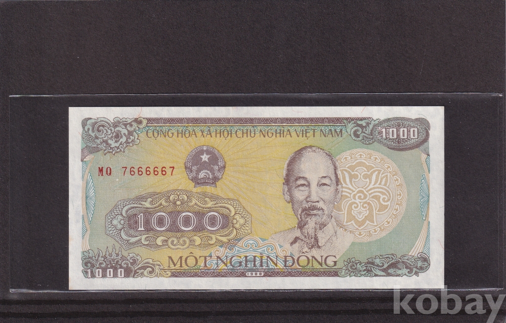 *베트남 특이번호 지폐 모음展* 1988년 1000동 MQ 7666667 - 5봉 레이더 미사용 지폐