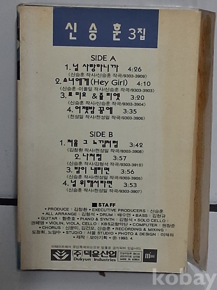 사오기, 신 승 훈 3집,,,,,,,,카세트테이프