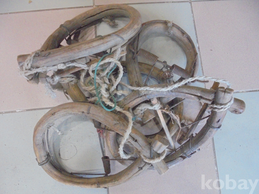 꿩틀을 묻어놓고 모이로 유인 꿩잡던 특수나무로휘여 잘만든 상태가 좋은 꿩잡던 좋은 꿩틀 5점