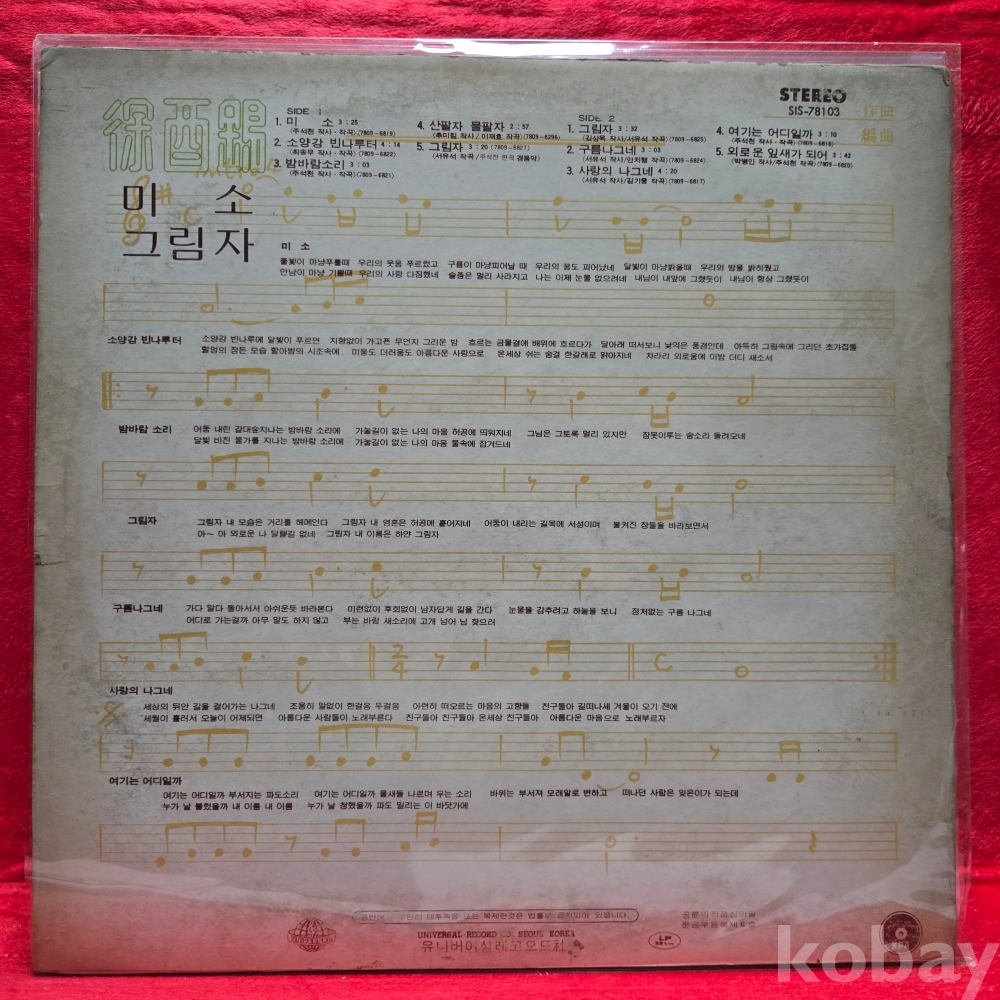 | 자켓상태 | VG : 주름, 접힘, 모서리 찢김 다수 | 음반상태 | EX : 재생에 영향 없는 가벼운 기스 존재 | 발매정보 | 초반 | 가사지여부 | 무 |