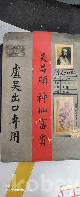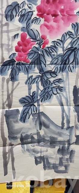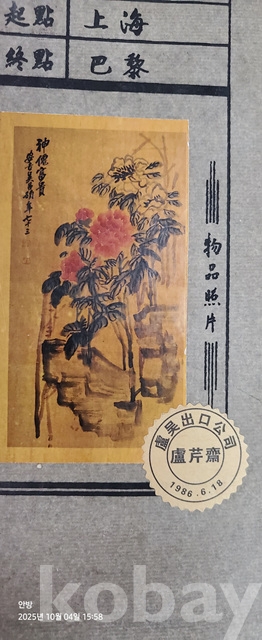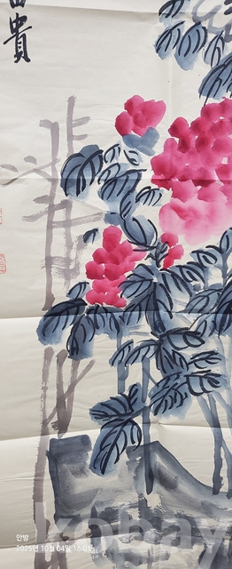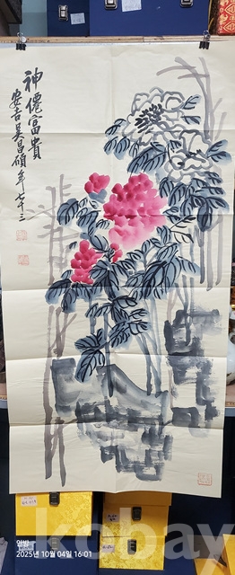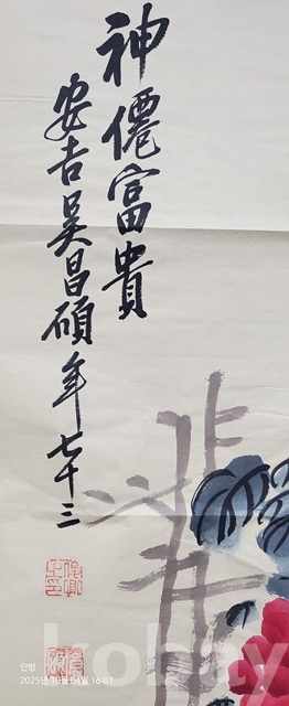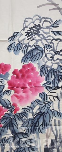 h-110.중국유명화가 오창석의목단(실체그린그림미감정)