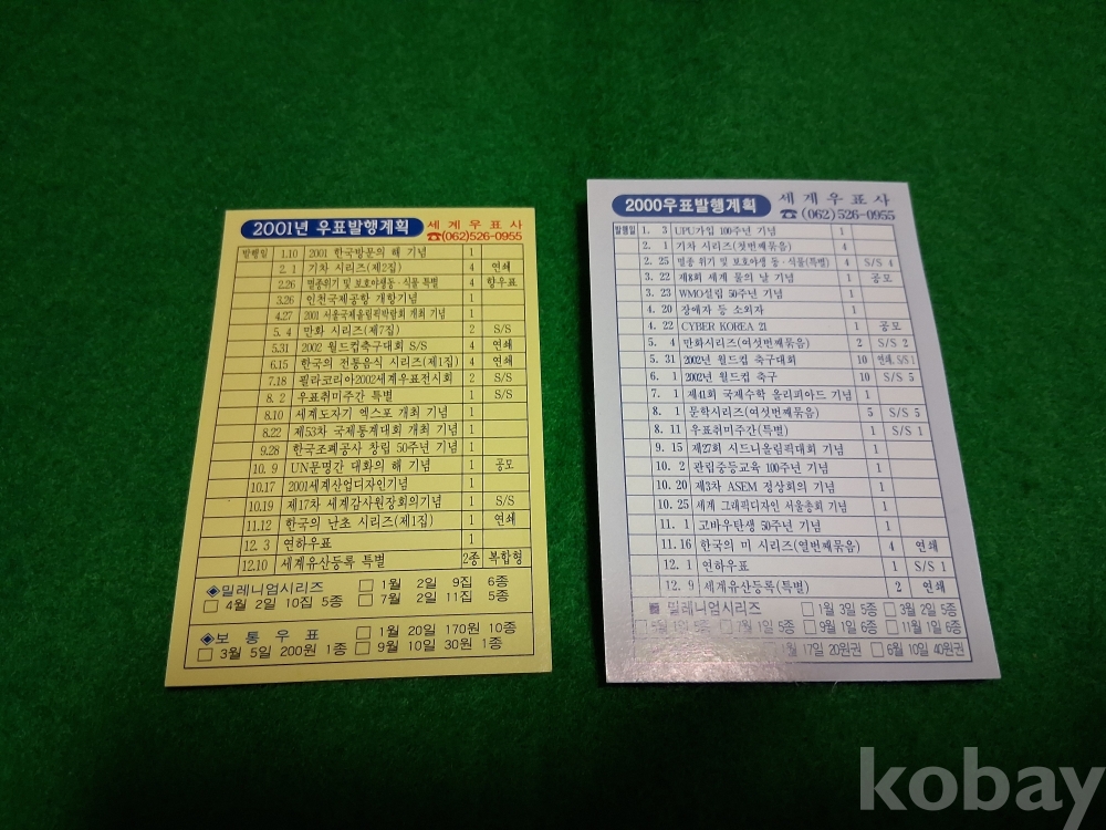 고바우 우표가 인쇄된 2000년, 2001년 우표발행계획표(2매)