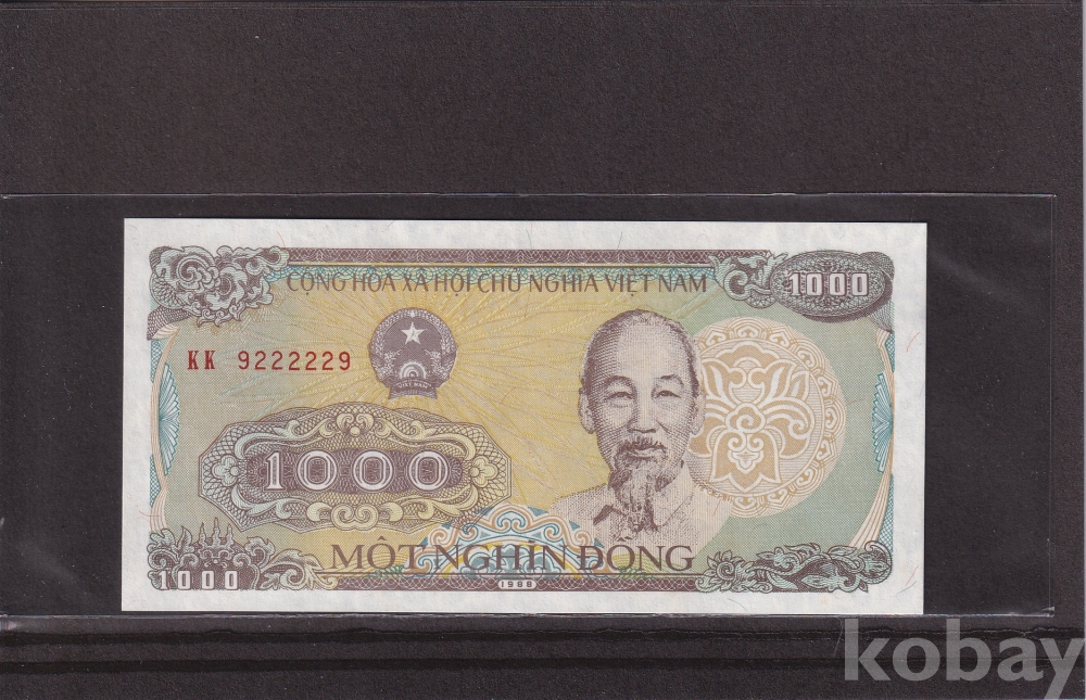 *베트남 특이번호 지폐 모음展* 1988년 1000동 KK 9222229 - 5봉 레이더 미사용 지폐