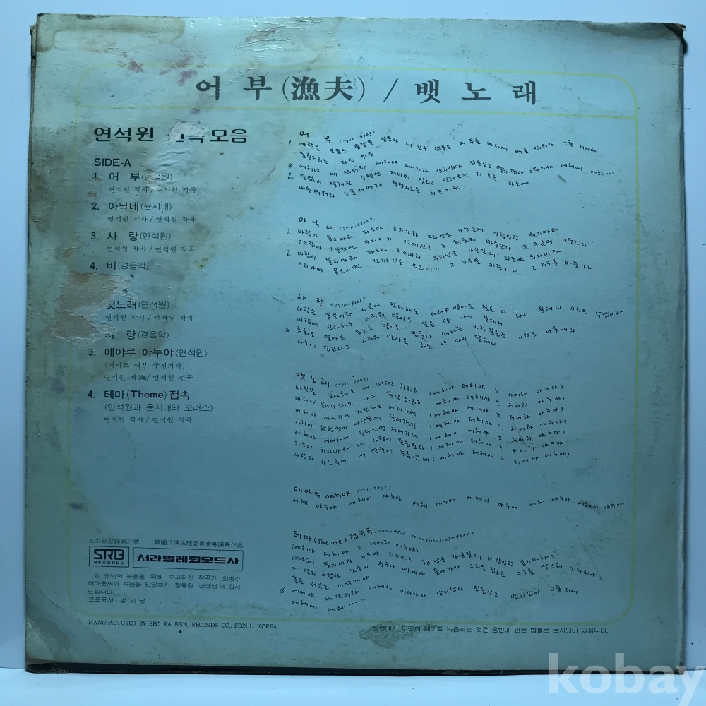LP 83,800-82 연석원 - 어부/ 뱃노래 . 자켓 VG 알판 EX 78 년 국내반
