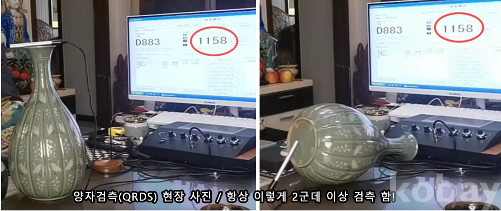 같이 발굴한 상감청자가 있는데, 같은 도공이 만든 것 같이 비슷합니다. 이 기물을 양자검측한 결과를 보면 고려